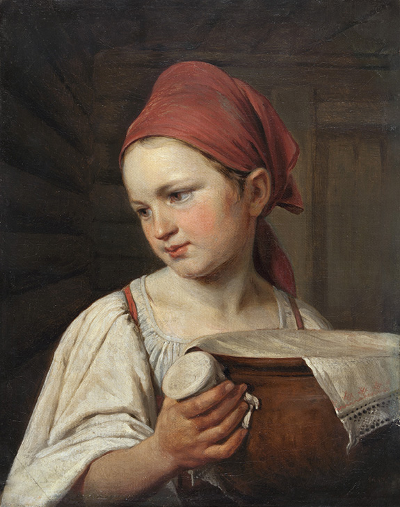 На фото: Венецианов А.Г., Молочница (Крестьянка с подойником), 1826