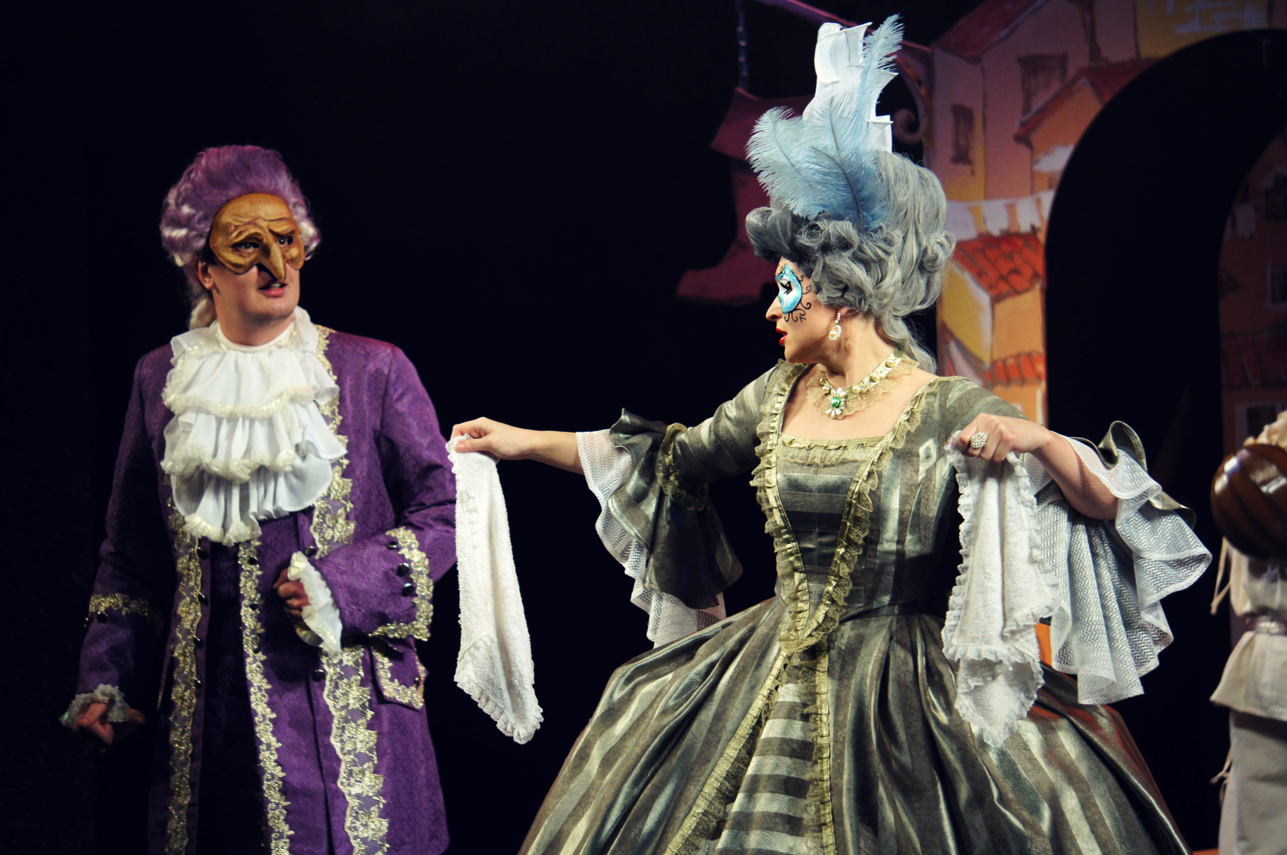Зрителей ждет динамичная комедия итальянского драматурга Карло Гольдони в интерпретации режиссера Вадима Романова о судьбе двух близнецов из Венеции и Бергамо, еще в детстве разлученных с их сестрой Фламиньей.