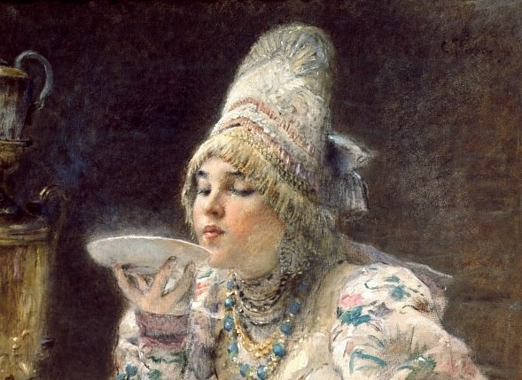 На фото: К. Е. Маковский. За чаем. 1914