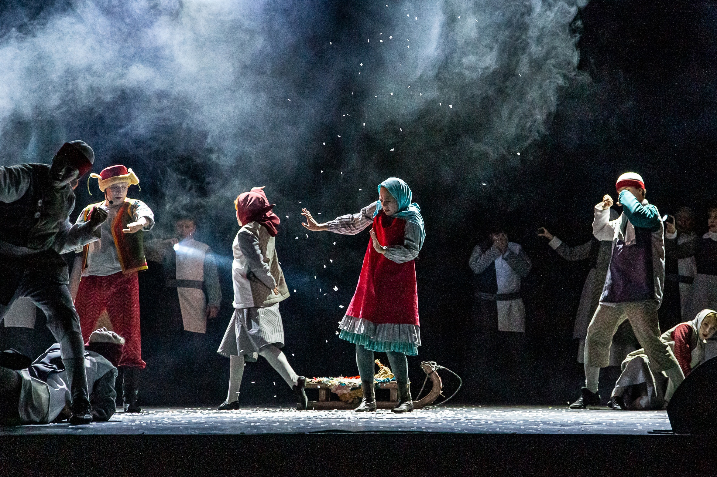 Как вещь ручной работы, спектакль «Серебряное копытце» словно весь целиком создан из уютных кусочков цветной ткани, толстых снежных одеял, простой человеческой заботы, мурлыканья кошки и вечерних желтых огоньков в окошках нахохлившихся на морозе домиков. Наполненная старинными прибаутками и заигрышами, запахом на ярмарке, катаниями на санках и веселыми играми деревенской детворы, весельем горок и предновогодним ощущением чуда, сказка явится детям игрой теней волшебного фонарика в руках доброго деда, слепится из снега, падающего на крыши домиков, развеселит куклами. Много доброго вынесут дети из истории, которая однажды в уральской глубинке приключилась