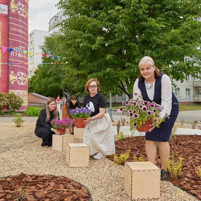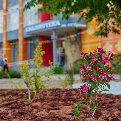 Проект «Томик Пушкина» стал настоящим событием для города, превратив уличное пространство перед Центральной библиотекой им. Александра Сергеевича Пушкина в уютную зеленую зону, где проходят культурные мероприятия и творческие встречи. Основная идея ландшафтного дизайна заключалась в создании гармоничного пространства, где можно пообщаться с друзьями, влиться в творческий процесс, или просто отдохнуть в тени на удобных скамейках.